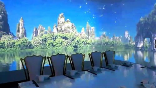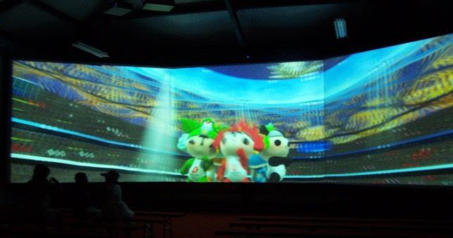 由多塊銀幕組成,通過多臺投影機,采用投影融合技術,創造出超大無縫的逼真畫面。利用電影自身特有的技術優勢,使觀眾在高質量的聲畫環境包圍之中,產生身臨其境的強烈的現場 ……